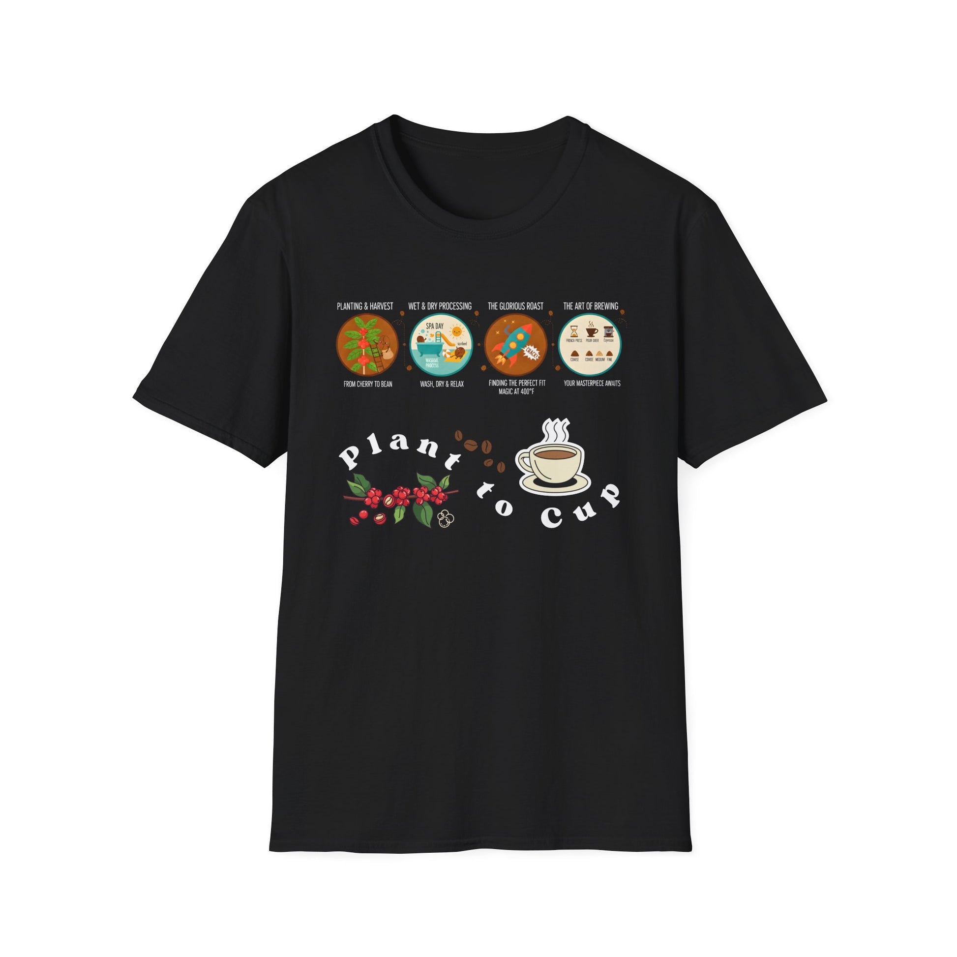 Plant to Cup: The Coffee Journey Infographic T-Shirt - Premium Coffee Nerd Apparel